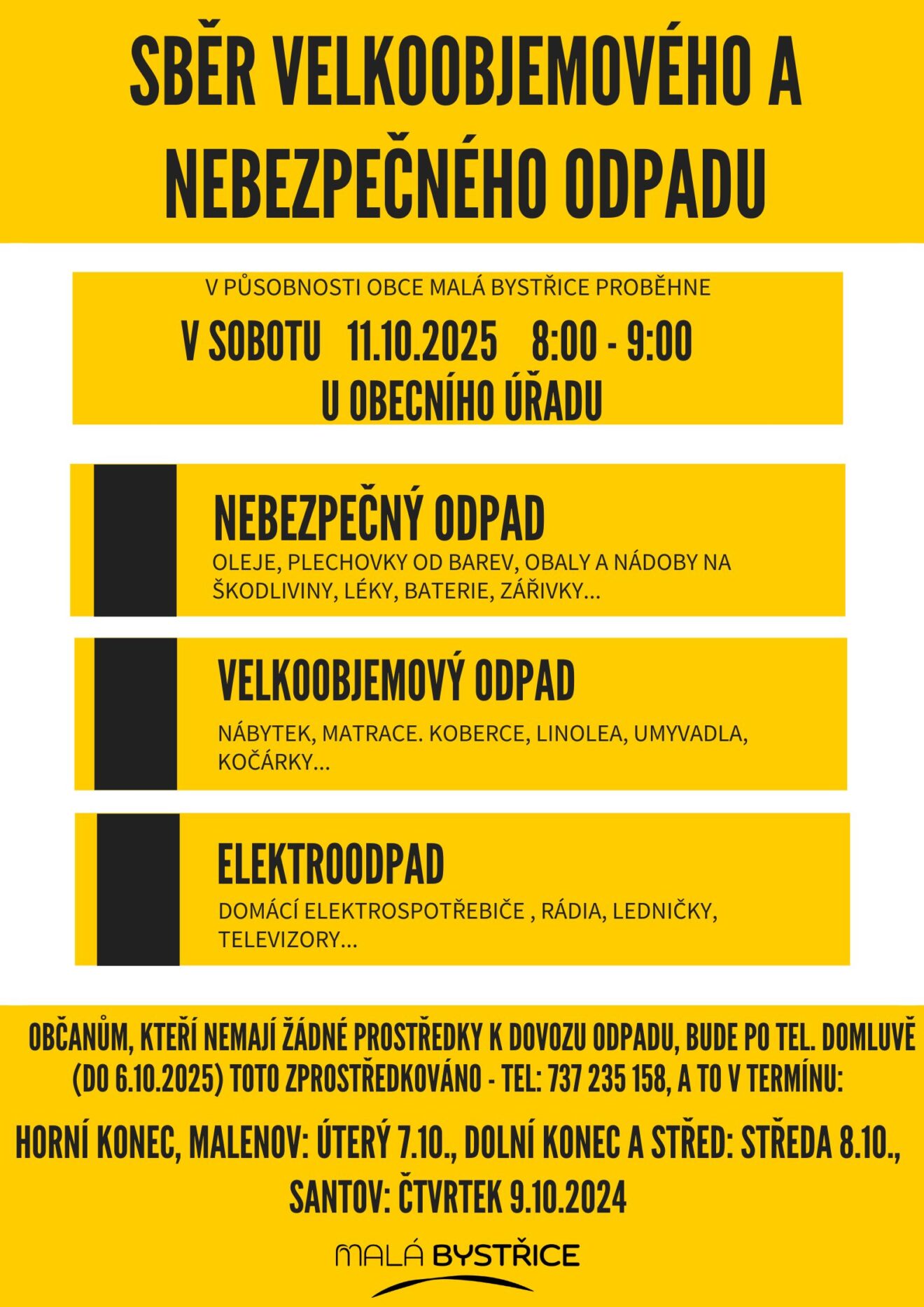 • Sběr velkoobjemového a nebezpečného odpadu v obci 01/10/2025
